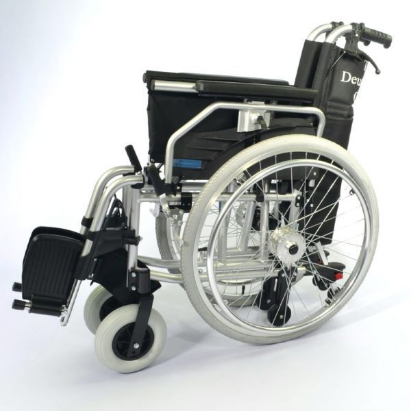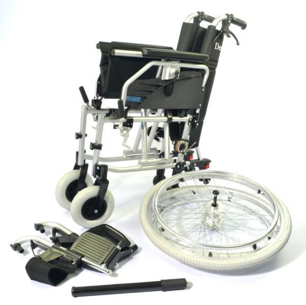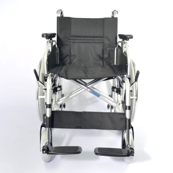 Кресло-коляска инвалидная LY-710-115LQ - легкая и удобная в использовании инвалидная алюминиевая кресло-коляска с системой складывания, откидными мягкими подлокотниками и съемными регулируемыми по высоте подножками.