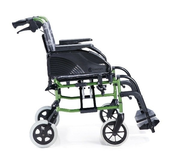 Кресло-коляска инвалидная алюминиевая поставляется с двумя комплектами задних колес - литые 8" PU и литые 24" PU, а также дополнительными тормозами на рукоятках для сопровождающего лица. Это легкая и удобная в использовании инвалидная алюминиевая кресло-коляска со складной спинкой, откидными мягкими подлокотниками и съемными регулируемыми по высоте подножками.
