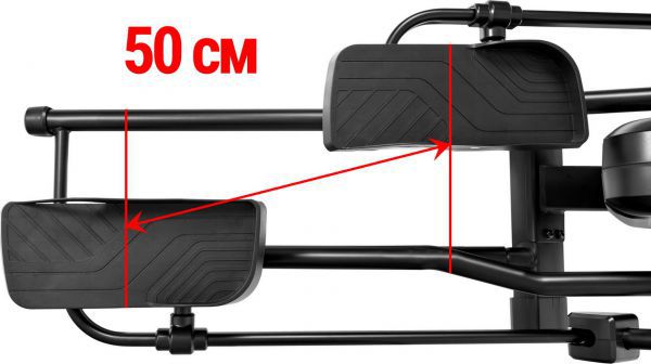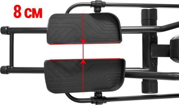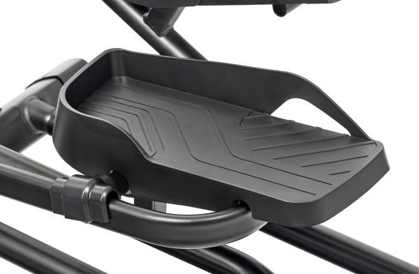 Длина шага 50 см – это оптимальное значение для большинства пользователей. В связке с увеличенной длиной шага работает супермалый Q-Фактор E.S.Q.F. – расстояние между педалями небольшое и составляет 8 см. Плавное педалирование с равномерным распределением нагрузки на всем цикле движения обеспечивают трехкомпонентный шатун с реверсивным ходом и утяжеленный сбалансированный маховик с инерционным весом 26,4 кг.