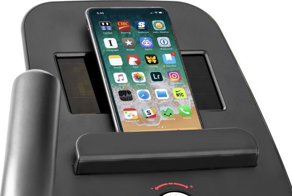 Небольшой, но востребованной опцией является подставка под смартфон – просмотр видео, соцсети или простой серф в интернете поможет скрасить рутинность тренировок. Тренажер перемещается за счет транспортировочных роликов, а выровнять его положение на поверхности можно при помощи компенсаторов неровностей пола.