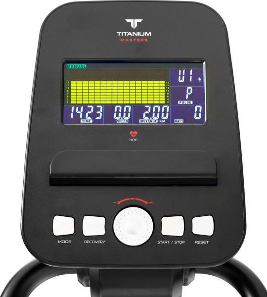 В консоль тренажера встроен приемник частоты сердечного пульса (для полноценной работы потребуется нагрудный передатчик пульса Titanium Masters HR Transmitter (приобретается отдельно) или совместимый. Ватт-программа позволяет зафиксировать необходимый уровень нагрузки - он останется постоянным вне зависимости от скорости вращения педалей.