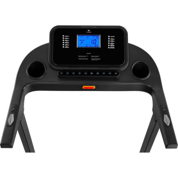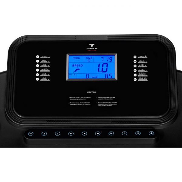 Тренировочный компьютер представлен голубым LCD-дисплеем диагональю 5 дюймов (12,7 см) c сенсорными клавишами. На экран одновременно выводятся все основные параметры тренировки - время, скорость, дистанция, угол наклона, потраченные калории и пульс. В программный пакет входят 15 предустановленных программ, направленных на тренировку скоростных качеств, выносливости, укрепления сердечно-сосудистой системы и похудания, а также 3 программы обратного отсчета (время, дистанция, калории). Для считывания показаний пульса в поручни дорожки вмонтированы контактные сенсорные датчики. Благодаря "быстрым клавишам" управления можно отрегулировать скорость либо угол наклона, не снимая рук с поручней.