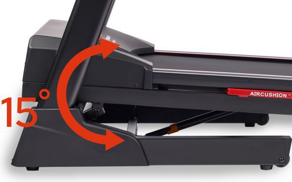 Надежный, двигатель японской Fuji Electric мощностью 3,25 л.с. постоянного тока разгоняет дорожку до 16 км/ч. Размер бегового полотна 138х46 см. Электрически изменяемый угол наклона от 0 до 15% . За качество скольжения отвечает многослойное полотно NНT-218 толщиной 1,8 мм. швейцарского бренда Habasit и парафинированная дека толщиной 18 мм. В дорожку установлена одна и самых передовых амортизационных платформ – здесь работает связка из 4-ех полиуретан-гелиевых амортизаторов air-CUSHION™ и 4-ех полноразмерных динамических эластомеров VCS™ профессионального уровня.