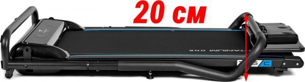 Беговая дорожка Titanium One T25 C. Проверенный временем, надежный и тяговитый двигатель от японской Fuji™ Electric мощностью 1.5 л.с. и максимальной скоростью 10 км/ч выдерживает пользователя до 100 кг. Полимерное полотно толщиной 1,5 мм и размером беговой зоны 100*38 см обеспечивает отличное сцепление, безопасность и комфорт. Благодаря системе компактного хранения true-VERTICAL™ тренажер можно хранить в горизонтальном и вертикальном положении. Причем в вертикальном положении никакой дополнительной поддержки типа стены не требуется. В сложенном виде дорожка составляет всего 20 см по толщине, ей нужно минимум места для хранения.