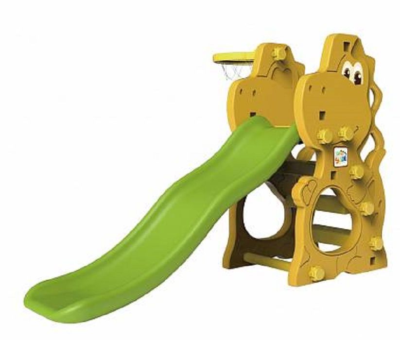 Горка Toy Monarch Динозаврик разработана таким образом, что создается ощущение, что ее скат поддерживают друзья динозаврики с забавными физиономиями, а подниматься на горку можно прямо по их спинам. Детки с радостью будут веселиться, кататься с горки, играть в баскетбол, используя прикрепленное сбоку кольцо, набираясь сил и здоровья.