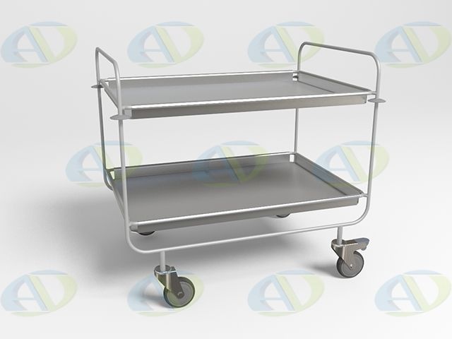 Внутрикорпусная тележка позволяет осуществлять сбор пищи в специализированных учреждениях. Стальной каркас представлен сварными трубами, покрытыми порошковым составом, препятствующим развитию коррозии. Каркас пригоден для обработки концентрированными и дезинфекционными средствами. Нержавеющие полки — съемные, по бокам имеют бортики, исключающие выпадение перевозимых предметов. Тележка снабжена самоориентирующимися колесами с тормозными фиксаторами.