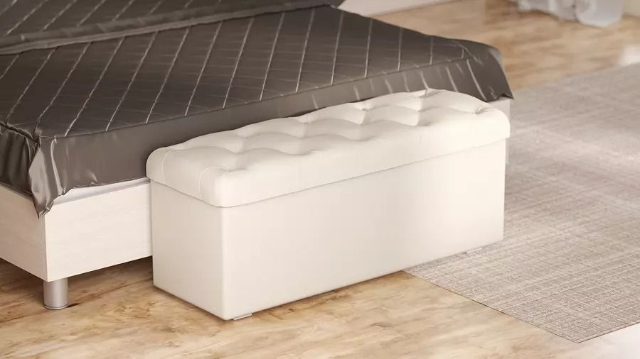 Пуф легко впишется в дизайн современной спальни. Кроме этого, он оснащен коробом для хранения. Можно сложить в него различные мелочи. Таким образом, экспресс-уборка перед приходом гостей становится куда проще.Пуф легко подвинуть и, таким образом, спрятать, чтобы он не мешал не занимал полезной площади, когда хочется освободить пространство. Каркас пуфа изготовлен из лдсп. Этот достаточно прочный, материал позволит выдерживать больший вес по сравнению с бескаркасными аналогами. Мягкий слой наполнителя облегает прочный каркас, а обтягивает его со всех сторон бархатистая, очень приятная на ощупь экокожа кашемир.