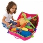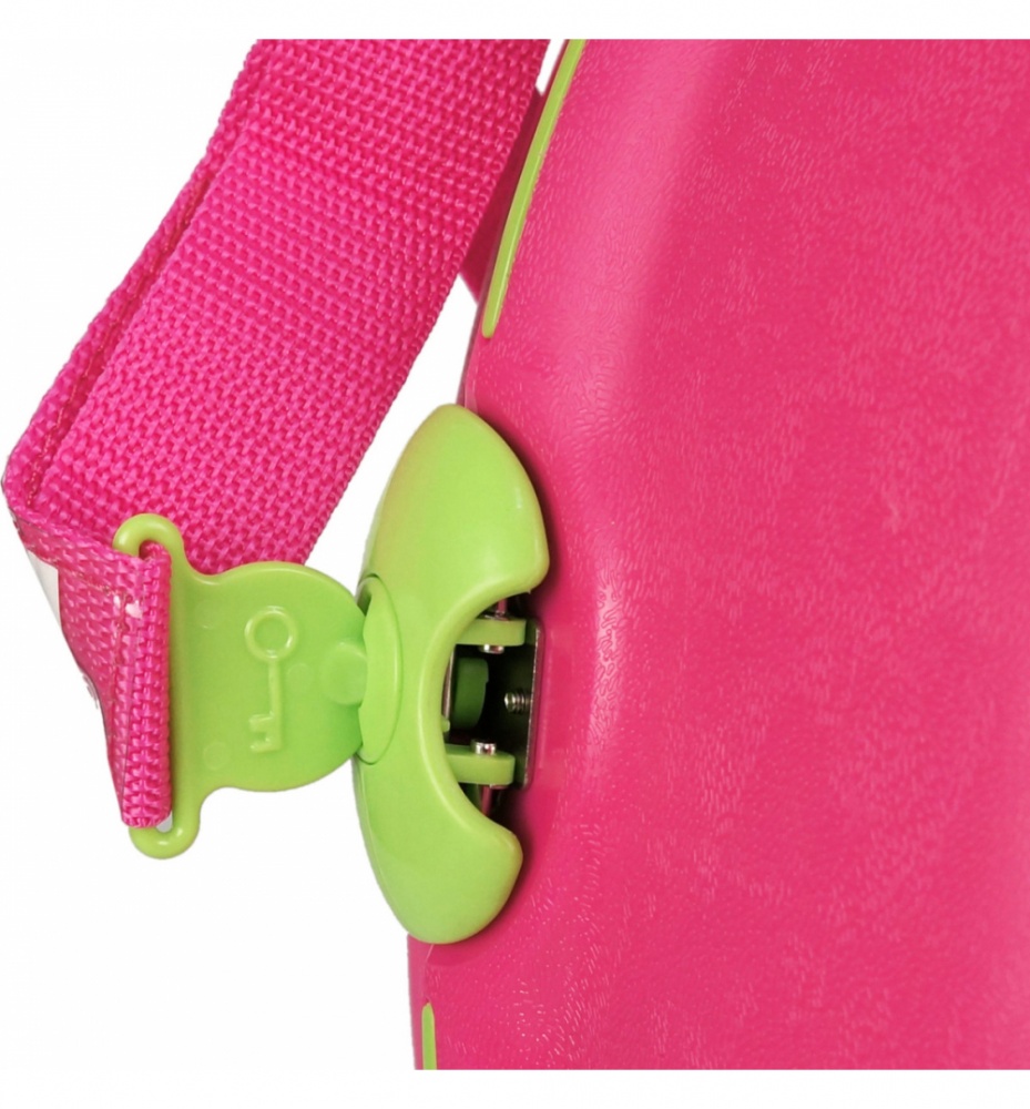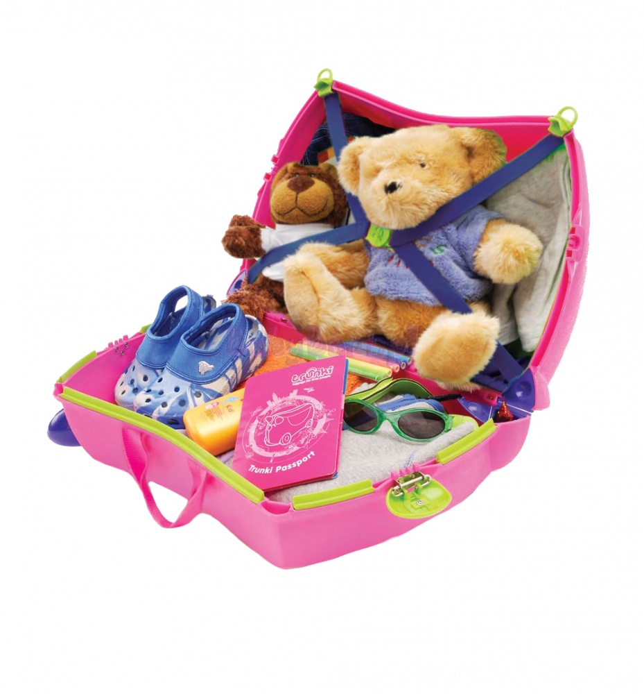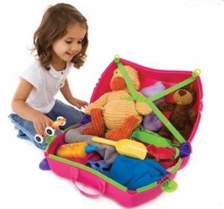Чемодан на колесиках станет отличным подарком для маленькой путешественницы. Он сочетает в себе не только сумку для перевозки и хранения вещей, но и забавную игрушку, а также удобный стульчик. На чемодане можно кататься, отталкиваясь ножками от пола. Изделие оснащено удобными ручками и надежным замком.