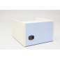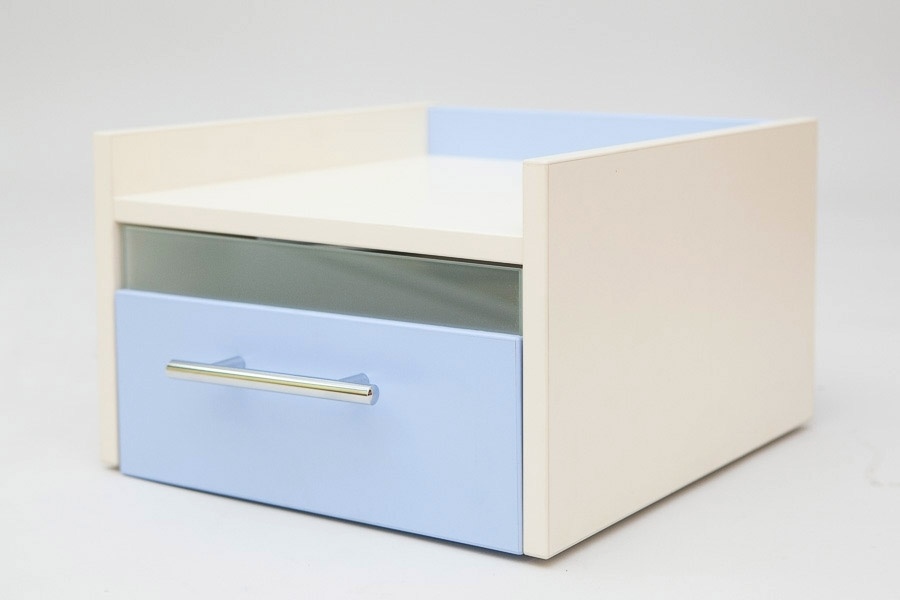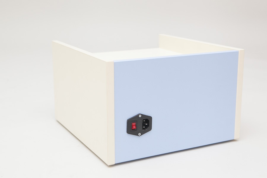 Ультрафиолетовая камера Уфикон имеет продуманную и удобную конструкцию. Ее корпус изготовлен из ЛДСП, покрытого высококачественной кромкой REHAU. В верхней части прибора располагается удобная полочка с бортиками, предназначенная для хранения необходимых косметологу инструментов. Ультрафиолетовое излучение автоматически гаснет при выдвижении ящика.