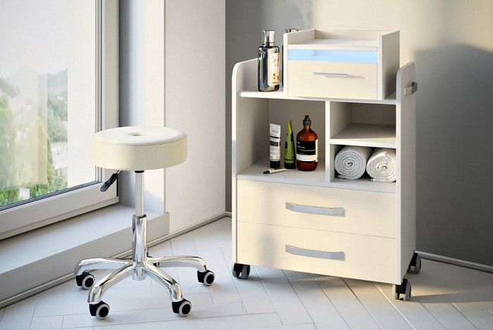 Ультрафиолетовая камера Уфикон имеет продуманную и удобную конструкцию. Ее корпус изготовлен из ЛДСП, покрытого высококачественной кромкой REHAU. В верхней части прибора располагается удобная полочка с бортиками, предназначенная для хранения необходимых косметологу инструментов. Ультрафиолетовое излучение автоматически гаснет при выдвижении ящика.