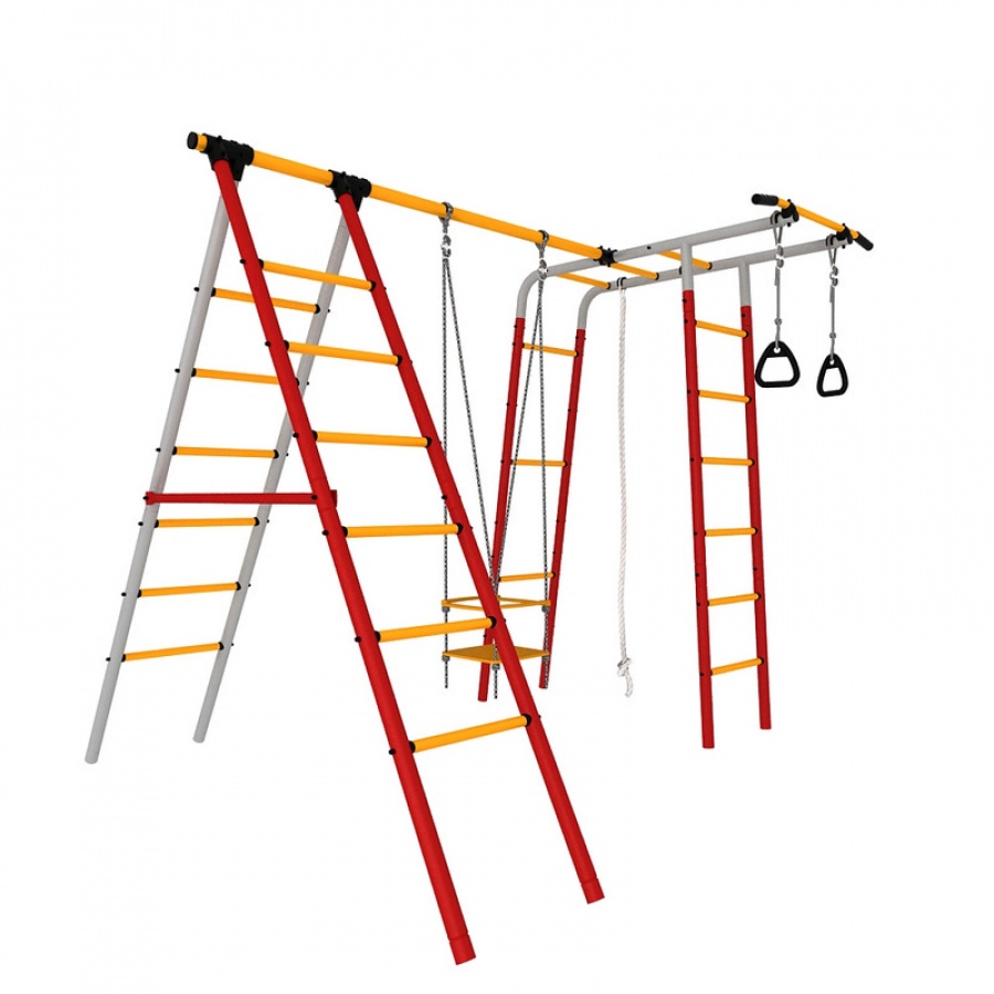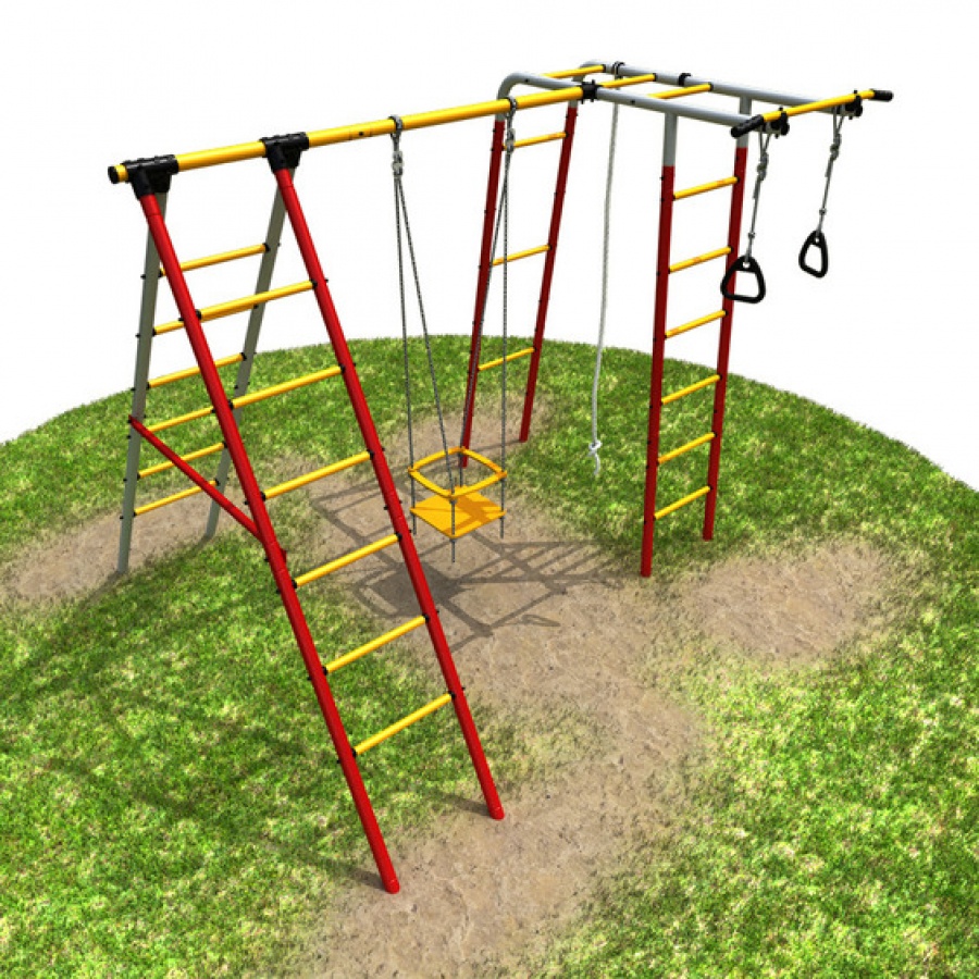 Спортивный уличный комплекс Букварь предназначен для проведения досуга и выполнения упражнений детьми и взрослыми. В комплектацию комплекса входят лестница гимнастическая, турник неподвижный, рукоход, канат, кольца гимнастические, качели. Навесные составляющие комплекса легко переставляются, подстраиваясь под актуальные потребности пользователей. Металлические элементы покрыты защитным лакокрасочным составом, придающим комплексу износостойкость и прочность. Качели имеют защитные бортики и подходят самым маленьким пользователям.