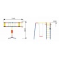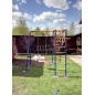 Уличный комплекс ROMANA Дачник создан для проведения активного досуга всех членов семьи. Комплекс устанавливается в специально отведенной уличной зоне, крепится специальными элементами и фиксаторами. Отверстия в каркасе и выступающие части конструкции комплекса закрыты накладками. Высота снарядов регулируется механически. Металлические части комплекса покрыты защитным термостойким и не выгорающим лакокрасочным составом. Весовое ограничение нагрузки на опоры составляет 100 кг.