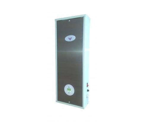 Имеет электронное пуско-регулирующее устройство (ЭПРА) и счетчик отработанного времени ламп. Передняя панель рециркулятора изготовлена из нержавеющей стали.