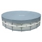 Тент предназначен для каркасных бассейнов INTEX Ultra Frame диаметром 549 см, изготовлен из прочного ПВХ, устойчивого к механическому воздействию и УФ-излучению, фиксируется на бассейне специальной веревкой, пропущенной по краю тента.