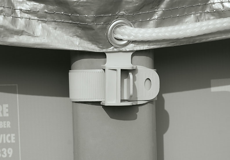 Тент предохраняет бассейн от попадания в него пыли, грязи, листвы, сохраняет воду чистой. Рекомендуется накрывать бассейн тентом на все время, пока бассейн не используется.
