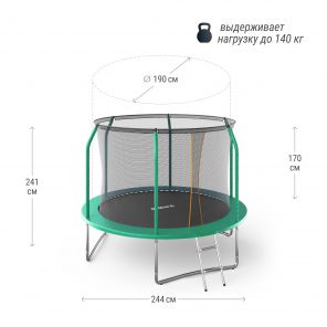 Спортивный батут Unix Line Simple 8ft inside отличается высокой безопасностью и эргономичностью, а также порадует вас ярким дизайном! Времяпровождение на батуте очень полезно для здоровья – это отличная кардио-нагрузка, возможность улучшить координацию, укрепить мышцы, увеличить гибкость и получить заряд радости. Поэтому покупка батута станет отличным решением для семейной тренировки или активного отдыха с детьми на даче в теплое время года. Конструкция предусматривает наличие защитного мата, под которым надежно спрятаны пружины, и специальной сетки, защищающей пользователей от выпадения во время прыжков. В качестве материала прыжкового полотна используется ткань с ПВХ-волокнами, которая называется "перматрон" и обладает повышенной устойчивостью к любым неблагоприятным факторам, включая влагу и повышенные нагрузки. Батут можно ставить как дома, так и на улице – монтаж не потребует от вас много времени и сил. При необходимости, конструкция легко разбирается, складывается и не занимает много места при транспортировке или хранении.