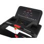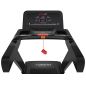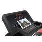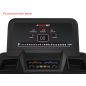Консоль состоит из основного и 5 дополнительных LED-дисплеев с белой подсветкой. в дорожке встроены специальные программы тренировки - 24 автоматических профиля, 3 пользовательские, 3 целевые (скорость, калории, расстояние), 1 BODY FAT, ручной режим. На поручнях расположены датчики пульса для отслеживания сердечного ритма во время тренировки. Также на консоли тренажера имеются дополнительные клавиши прямого выбора для регулировки скорости и наклона полотна сразу на 4 позиции.