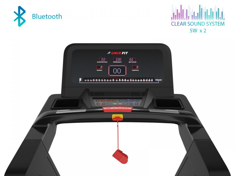 С помощью Bluetooth подключайте ваш смартфон или планшет и прослушивайте любимые треки или подкасты прямо во время занятий! Кроме того, у дорожки есть специальная подставка для вашего девайса. Бутылочку с водой удобно расположить в одном из двух карманов по краям консоли.