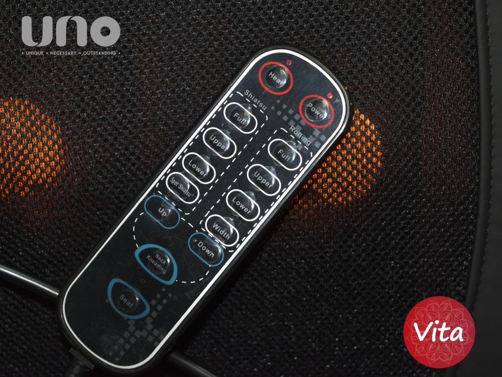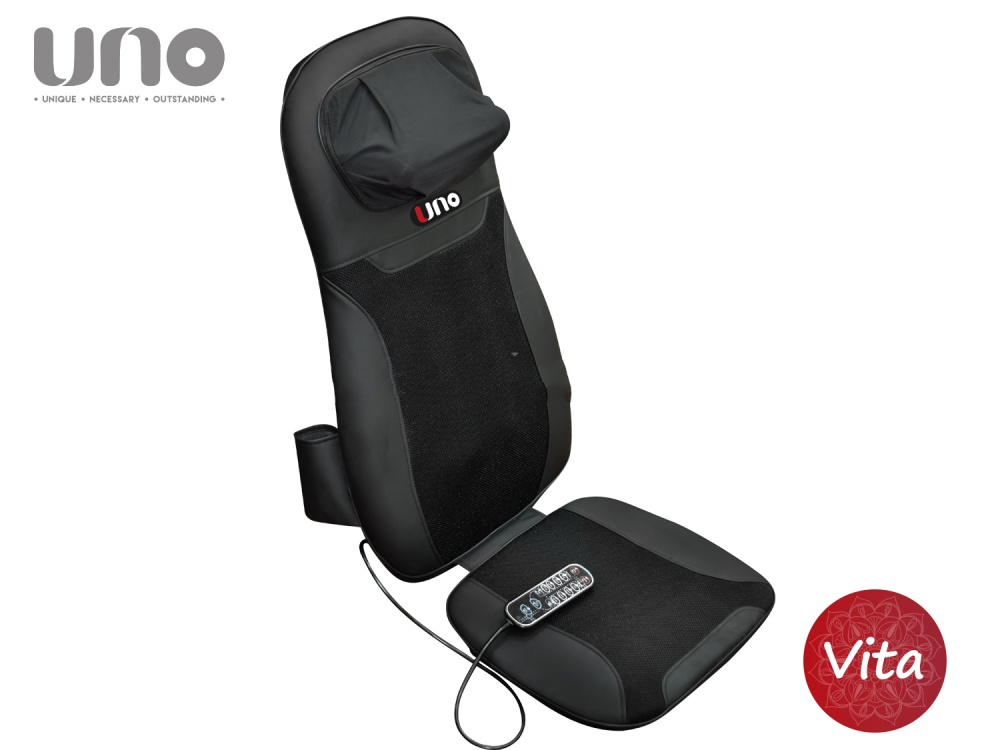 Новая массажная накидка UNO Vita была разработана специально для комплексного массажа спины. Отдельные блоки для массажа спины и шеи максимально точно воздействуют на жизненно важные акупунктурные точки и сеанс массажа станивится не только приятной, но и полезной терапевтической процедурой.