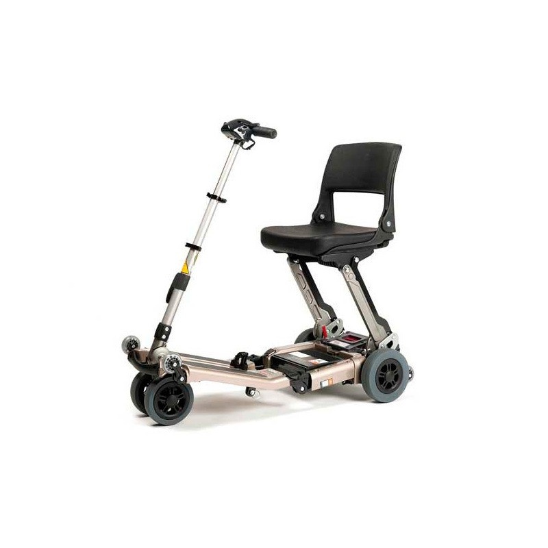 Скутер Luggie обеспечивает безопасное передвижение. Отлично подходит для пожилых и людей с ограниченными возможностями. Скутер легко складывается, что позволяет хранить и перевозить его без проблем. Пользователь может ездить на скутере за покупками, на прогулку. Работает оборудование от аккумулятора, заряжаемого от сети. Оснащен скутер комфортабельным сиденьем со спинкой. Руль прост в эксплуатации и регулируется по высоте, в соответствии с потребностями пользователя. Использовать скутер можно на улице и внутри помещений.