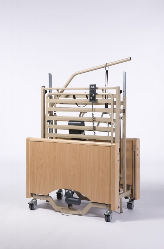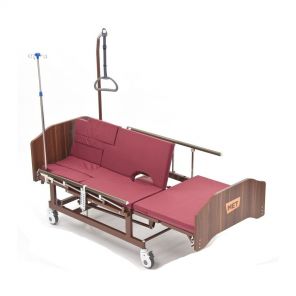 Ложе кровати разделено на 4 секции, положение которых регулируется электрическим приводом. Для предотвращения падения пациента предусмотрены боковые ограждения, которые могут опускаться, обеспечивая доступ медицинского персонала. Управление подвижными частями кровати осуществляется пультом.
