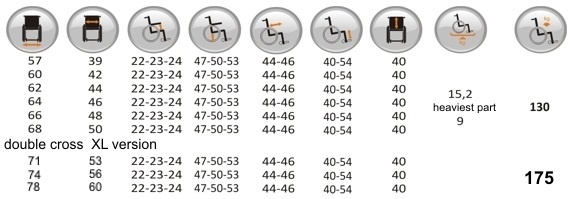Откидные подлокотники оборудованы не скользящими накладками и защитными боковинами. Высота подножек контролируется механическими фиксаторами. Подножки имеют широкие ножные опоры и текстильную ленту для упора голеней.