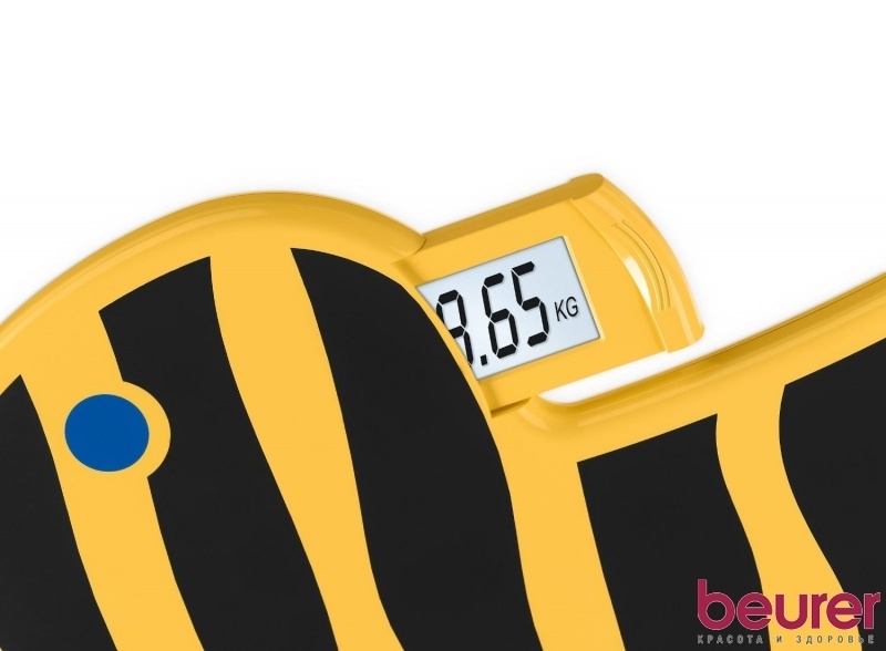 Напольные электронные весы Beurer JPS11 используются для определения веса детей. Яркий, привлекательный дизайн прибора, стилизованный под тигровую уточку на колесах вызывает заинтересованность ребенка и желание взвеситься.