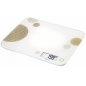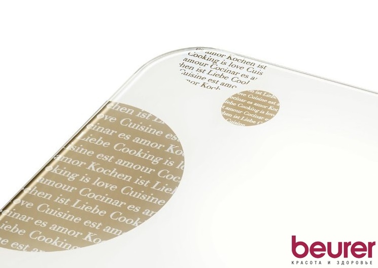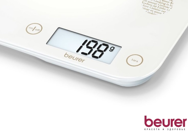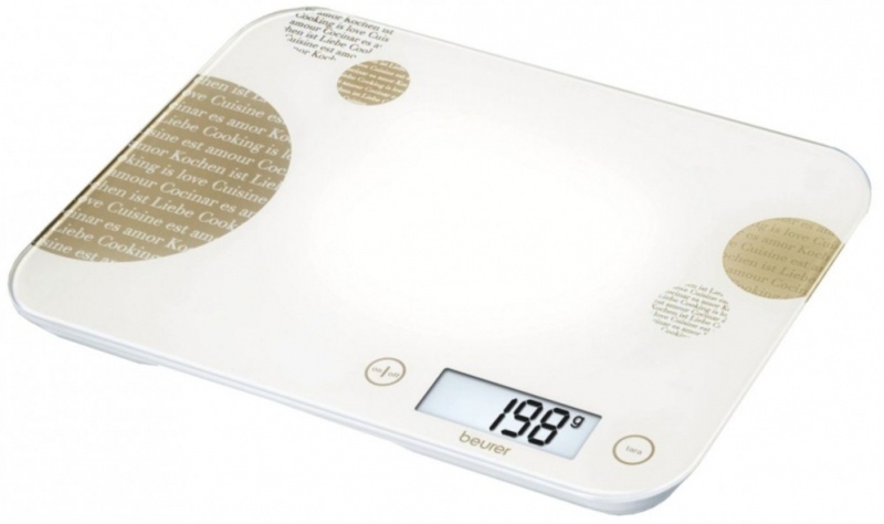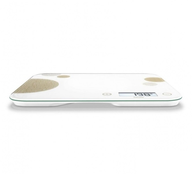 Дизайнерские весы Beurer KS48 выполнены в современном стиле. Белая матовая поверхность весов украшена графическими элементами в гармоничных оттенках. Рабочая платформа весов представлена закаленным стеклом, характеризующимся высокой прочностью и безопасностью. На большом информационном дисплее отображается вес продукта в установленных единицах измерения. Отключение прибора осуществляется в автоматическом режиме. Модель отличается особо тонким корпусом. Ограничение на вес продукта составляет 5 кг.