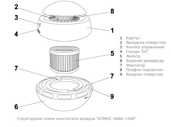 Увлажнитель и очиститель воздуха Атмос Аква 1300 создан для обработки не больших помещений. Принцип работы прибора основан на повторении природных процессов циклической очистки.