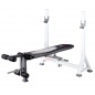 Особенности: - Скамья под штангу. - Стандартная ширина стоек. - Регулировка высоты. - Жимы лежа, баттерфляй, сгибание и разгибание ног в коленном суставе. - Рычаги ножной тяги снабжены мягкими грифами. - Благодаря своей конструкции занимает мало места. - Не используйте на данной скамье штангу короче 1,83 м.