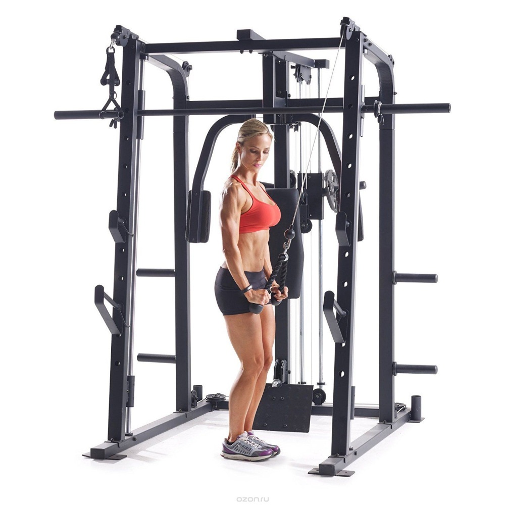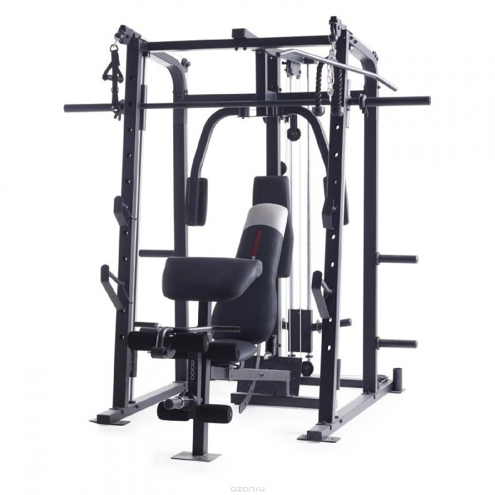 Силовая станция со скамьей WEIDER PRO 8500. Изготовлена из прочного стального профиля. Скамья со спинкой позволяет отрегулировать угол наклона. В комплекте опции для выполнения различных силовых упражнений: Машина Смита, тяга сверху / снизу, баттерфляй, парта для бицепса, жим ногами, жим лежа на скамье дополнительной штанги (опция).