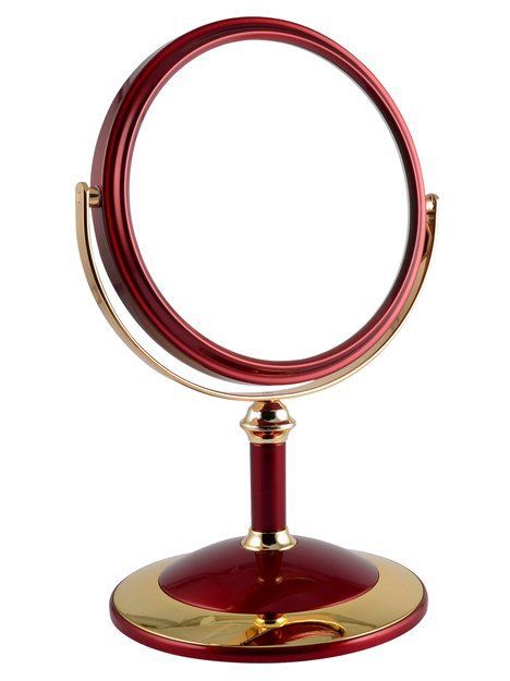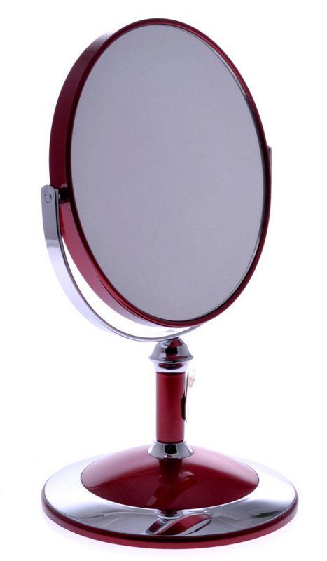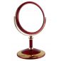 Зеркало косметическое, настольное, двустороннее B6"8021 RUBY/G Red&Gold. Изготовлено из хромированного металла и пластмассы покрытой цветным лаком. Тончайшее высококачественное стекло, используемое при изготовлении (1,5 мм), не даёт искривлений зеркальной поверхности. Увеличение в 5 раз. Приятный, красивый подарок для любой женщины.