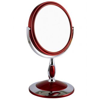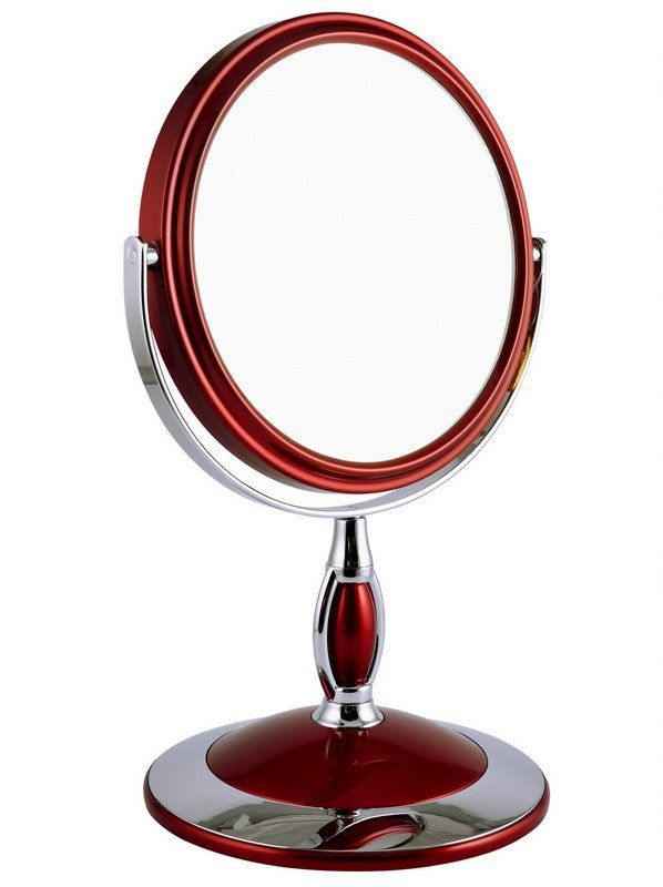 Зеркало косметическое, настольное, двустороннее Weisen B6"806 RUBY/C Red. Изготовлено из хромированного металла и пластмассы покрытой цветным лаком. Тончайшее высококачественное стекло, используемое при изготовлении (1,5 мм), не даёт искривлений зеркальной поверхности. Увеличение в 5 раз. Приятный, красивый подарок для любой женщины.
