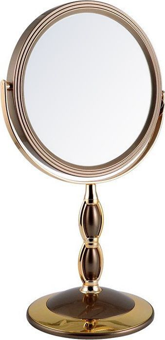 Зеркало косметическое, настольное, двустороннее Weisen B7"8066 BRZ/G Bronze&Gold. Изготовлено из хромированного металла и пластмассы покрытой цветным лаком. Тончайшее высококачественное стекло, используемое при изготовлении (1,5 мм), не даёт искривлений зеркальной поверхности. Увеличение в 5 раз. Приятный, красивый подарок для любой женщины.