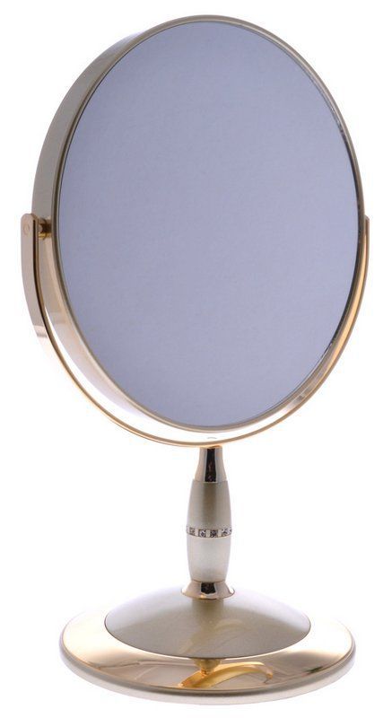 Зеркало косметическое, настольное, двустороннее Weisen B7"808 G5/G Gold. Изготовлено из хромированного металла и пластмассы покрытой цветным лаком. Тончайшее высококачественное стекло, используемое при изготовлении (1,5 мм), не даёт искривлений зеркальной поверхности. Увеличение в 5 раз. Приятный, красивый подарок для любой женщины.