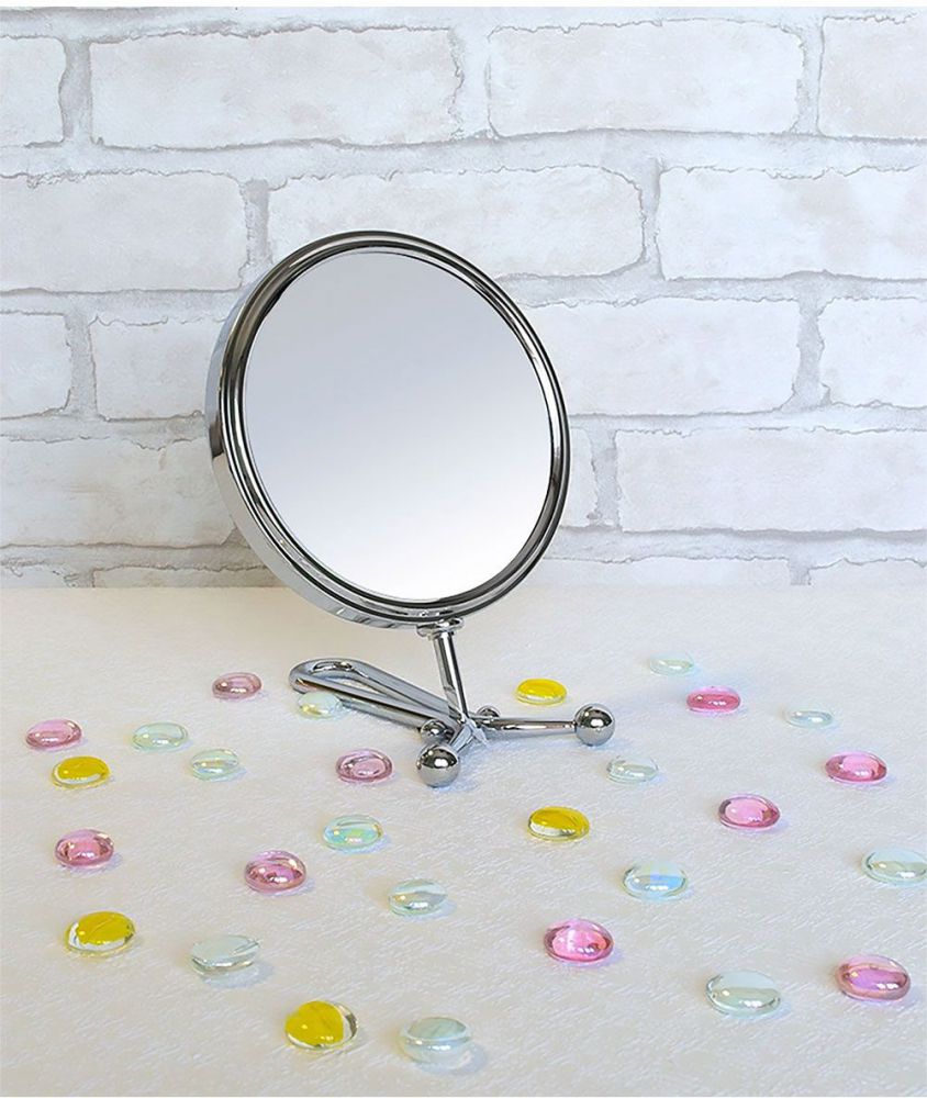 Настольное зеркало поворачивается вокруг своей оси, что создает дополнительное удобство в использовании. Увеличительное зеркало - незаменимый помощник при тщательной проработке деталей макияжа (например, нанесение теней).