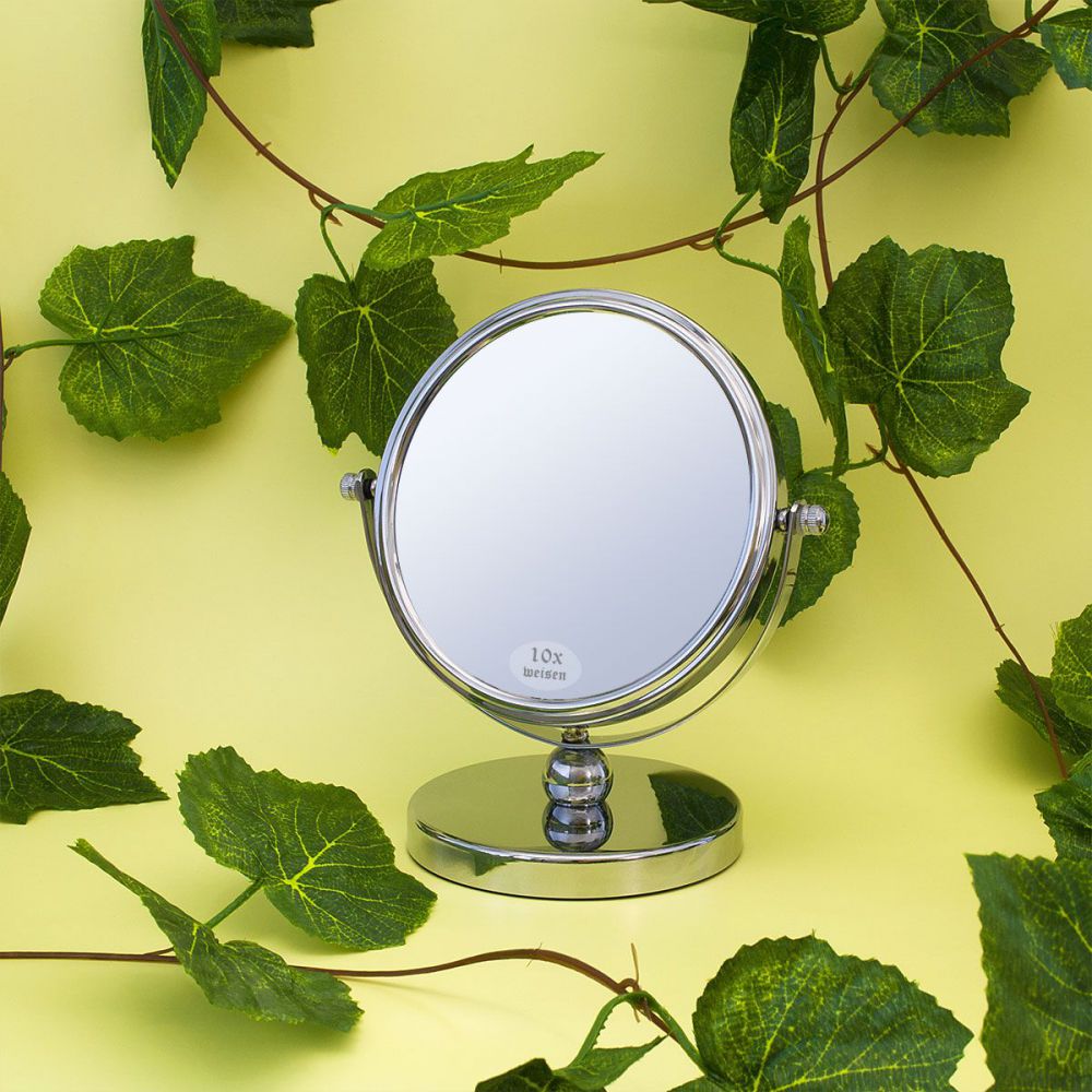 Настольное косметическое зеркало Weisen двустороннее, с 10-кратным увеличением. Свободное вращение на 360 градусов. Зеркало удобно использовать для ежедневных косметических процедур, для нанесения макияжа и ухода за лицом. 10-кратное увеличение позволяет разглядеть самые проблемные участки кожи, а также позволяет наносить макияж аккуратно и с высокой точностью людям, даже с плохим зрением.
