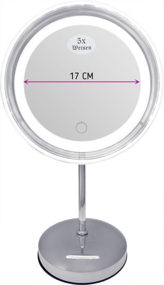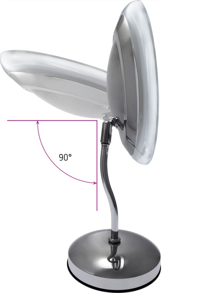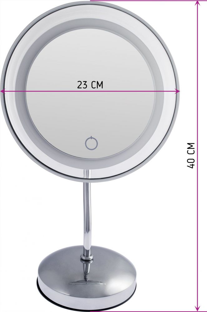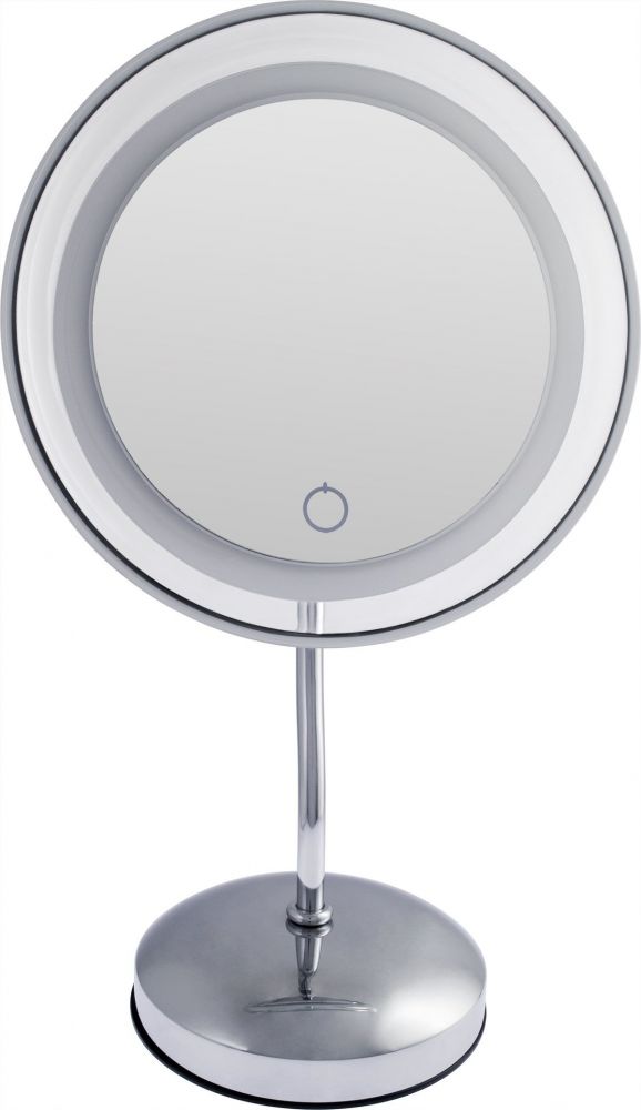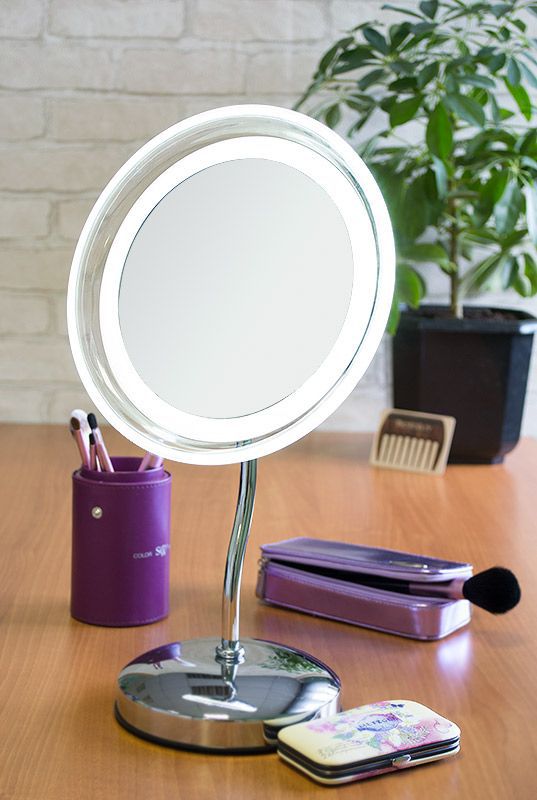 Оригинальное настольное одностороннее косметическое зеркало с LED-подсветкой. 5-ти кратное увеличение позволяет людям даже со слабым зрением наносить макияж без использования линз или очков. Зеркало оснащено сенсорным диммером с автоматическим выключением подсветки зеркала.Регулируемая по яркости LED-подсветка, дает возможность пользоваться зеркалом в самом темном месте и в любое время суток.