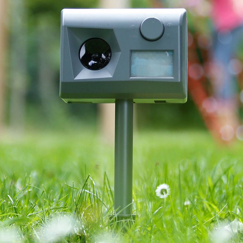Устанавливается непосредственно в грунт, для чего в комплекте есть специальная стойка. Отпугиватель надежно защищает территорию до 200 кв. метров. Отпугивающий эффект за счет использования ультразвукового сигнала, частоты которого являются совершенно безопасными для здоровья человека или животного.