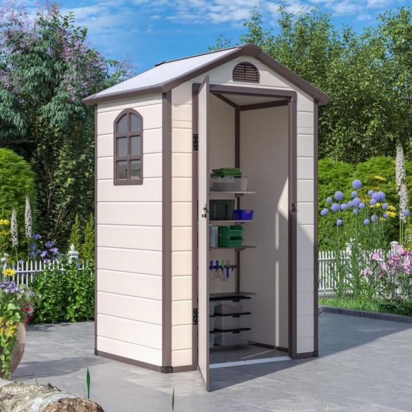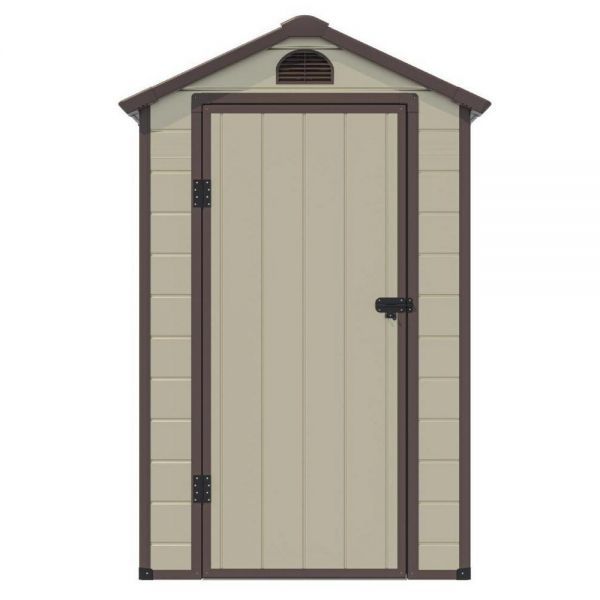 Пластиковый сарай для хранения различных садовых инструментов и инвентаря на садовом участке может быть размещен в любом месте участка благодаря небольшим размерам. Широкий дверной проем, который позволяет разместить в сарае технику больших размеров. Вентиляционные отверстия предотвращают образование сырости внутри сарая. Цвет может незначительно отличаться от представленного на фотографии.