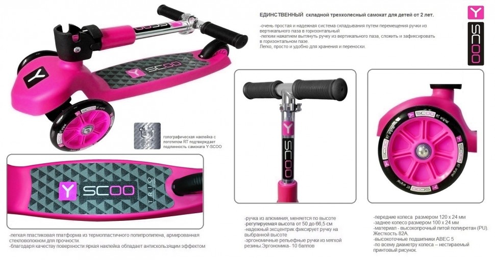Отзывы про детский самокат Y-Scoo RT Trio 120 Neon Pink0.0