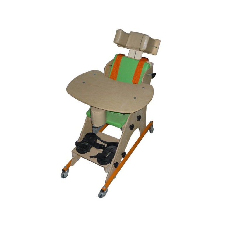 Опора для сидения, ОС-001.1.03, "Я Могу!" Размер 3 (со столиком и подголовником) предназначена для реабилитационных мероприятий с детьми с ограниченными возможностями, с патологиями различной степени тяжести, в том числе ДЦП. Представляет собой регулируемое ортопедическое кресло на металлической колесной основе. Комплектуется съемным столиком, укрепляемым на подлокотники и съемным регулируемым подголовником. Рама опоры изготовлена из высококачественной фанеры со стойким противоаллергенным покрытием, расположена на металлической колесной основе. Колеса поворотные, задние колеса оснащены тормозами. Наполнение мягких элементов опоры изготовлено из высококачественного поролона, покрытие – экологически чистая винилискожа, стойкая к обработке традиционными моющими средствами.