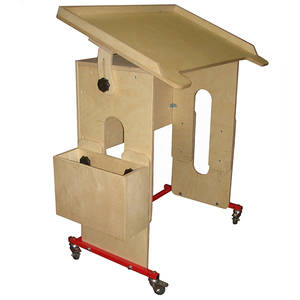 Стол-парта для занятий с детьми с ограниченными возможностями, из натурального дерева. Предназначена для занятий с детьми. Идеально подходит для совместного использования с опорами для сидения ОС-001.1. (размеры 2 и 3) и ОС-005.2. Возможно применение совместно с опорой для сидения ОС-003 (размеры 2 и 3) и опорой для сидения и стояния ОС-008. Материал - натуральное дерево. Основа - металл, колеса для перемещения поворотные, все колеса со стояночными тормозами. Столешница из натурального дерева. Покрытие натуральное, стойкое к многократной обработке. Бортики по краям, удобный вырез со стороны сидения. Регулировка столешницы по высоте, регулировка столешницы по углу наклона. Съемный ящик для игрушек и личных вещей, регулируемый по высоте.