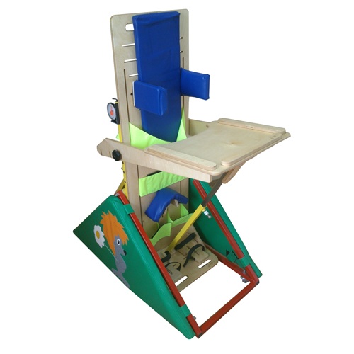 Опора для стояния – вертикализатор с обратным наклоном предназначена для пассивных реабилитационных мероприятий, направленных на адаптацию пациента к вертикальному положению, формирование чувства равновесия, адаптацию кровеносной системы и внутренних органов к новым нагрузкам в условиях вертикального положения тела. Применяется при ДЦП и других патологических состояниях, когда ребенок-инвалид не имеет возможности стоять и сидеть самостоятельно. Опора позволяет ребенку находиться в положении от строго горизонтального до строго вертикального, с жестким закреплением выбранного положения. Комплектуется съемным столиком для приема пищи и занятий.