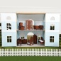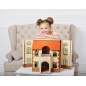 Домик состоит из 2-х этажей. Он полностью закрытый. Чтобы получить доступ к игровому пространству, необходимо открыть створки фасада здания и приподнять крышу. Внутреннее помещение обустроить следует согласно индивидуально придуманному дизайну. Декорировать стены можно при помощи наклеек, нарисованными собственноручными картинами, а также придумать необычный и оригинальный цвет обоев.