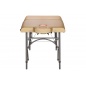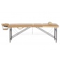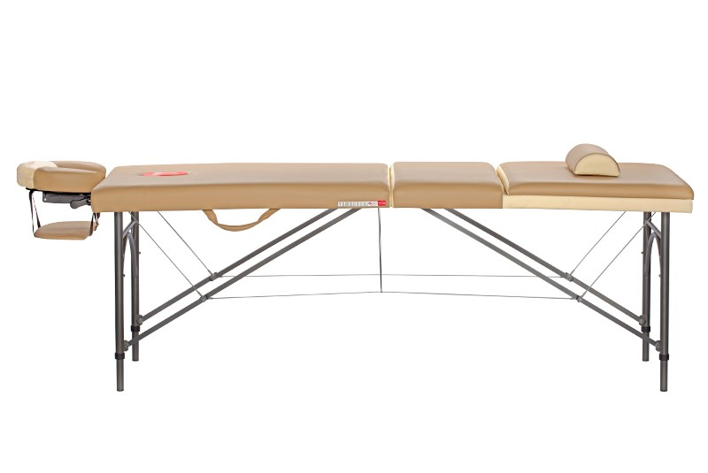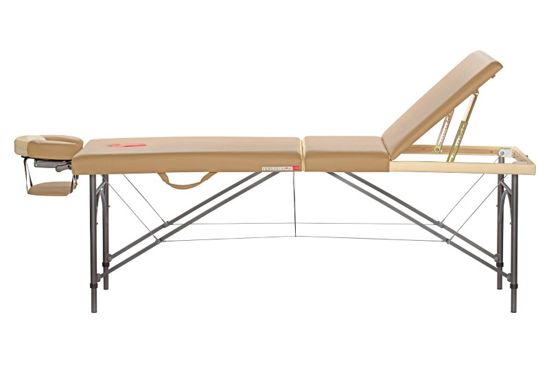 Складной каркас выполнен из авиационного алюминия, облегчающего вес устройства. Высота стола и положение подвижной секции контролируется кнопочным механизмом. Износостойкая обивка очищается моющими средствами, упругий наполнитель быстро возвращает форму.
