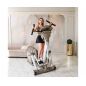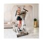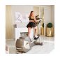 Главное достоинство станция 950 в том, что данная модель позволяет сразу тренировать мышцы как верхней, так и нижней части тела. Это достигается благодаря подвижным педалям и двигающимся рукояткам. Пользователь во время занятия совершает не только шаги по эллиптическому радиусу, но и круговые движения руками, нагружая при этом грудную клетку и мышцы пресса.