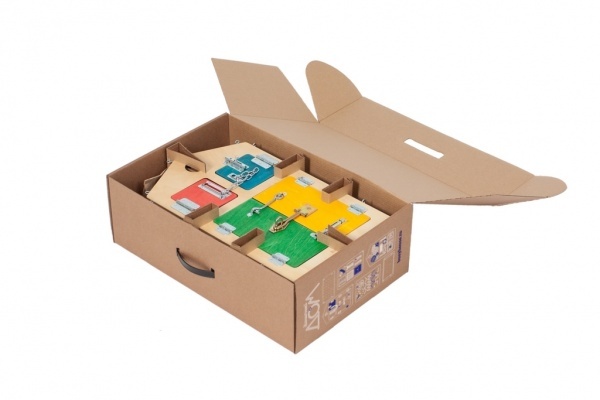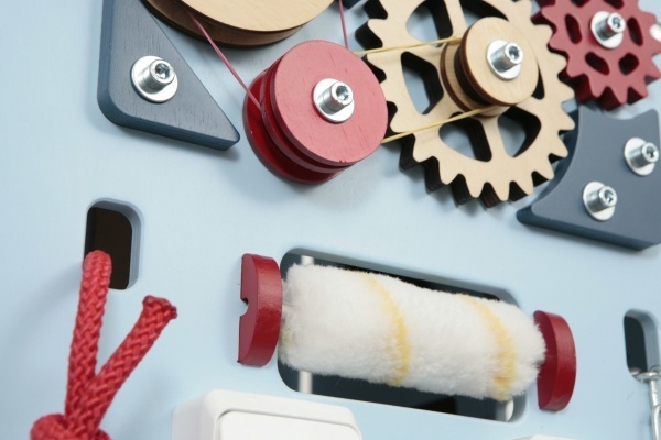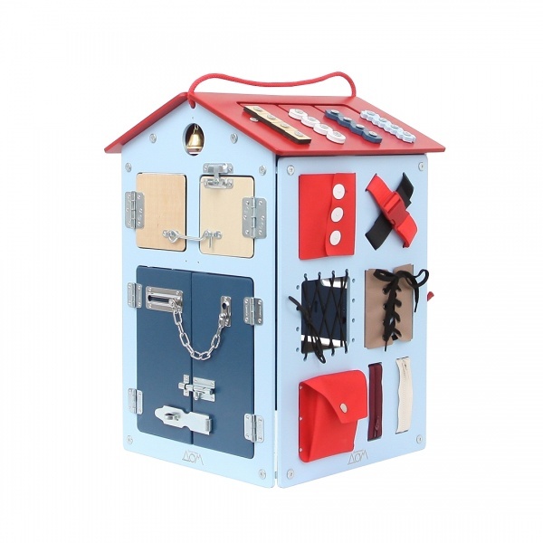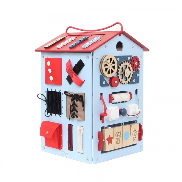 Игровой комплекс Занятный дом – это не просто бизиборд, это шесть бизибордов. Можно составить из панелей игровой домик, а можно разместить горизонтально или поделить их между несколькими ребятишками.