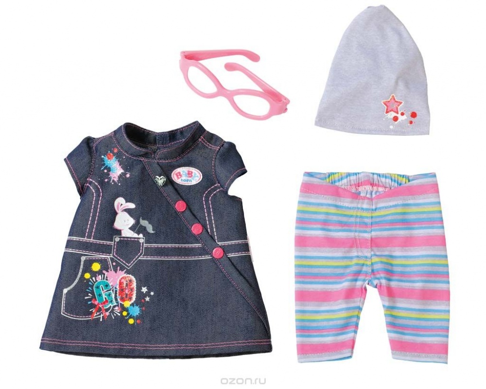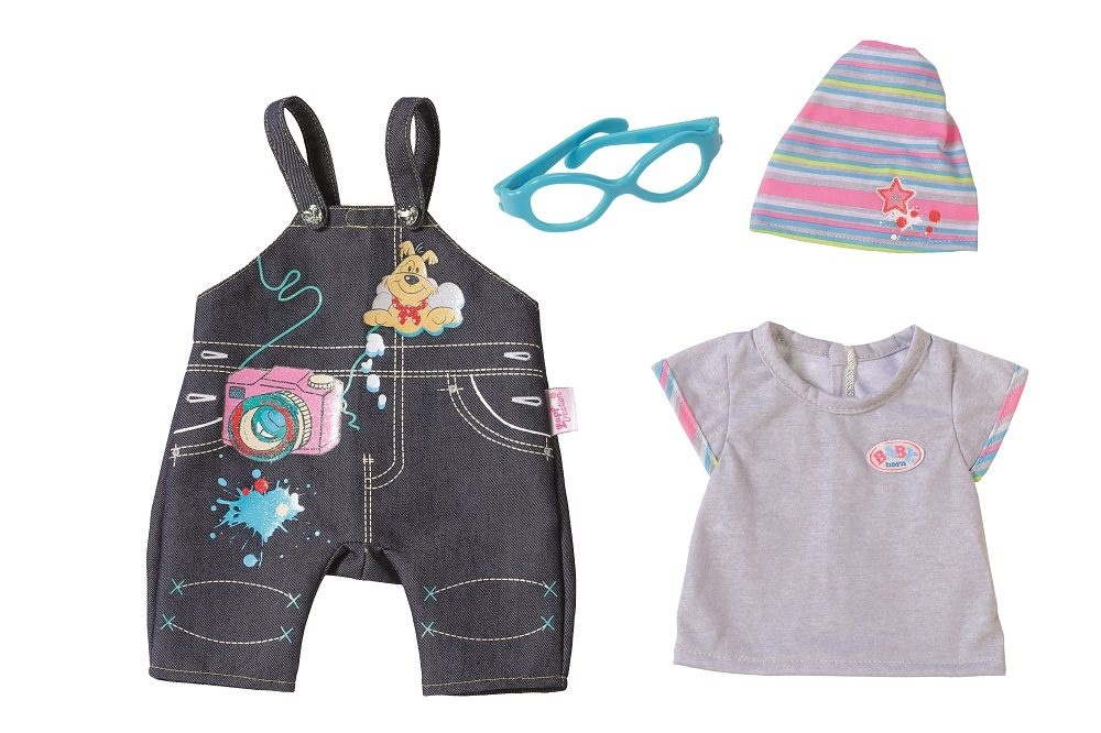 Комплект джинсовой одежды прекрасно дополнит образ замечательной куклы Baby Born. У этой куколки одежда как у настоящего ребенка. Девочки будут с удовольствием надевать на куколку такой комплект, ведь он очень стильный и удобный. В нем можно выходить в хорошую солнечную погоду, прогуливаться и отдыхать на природе.