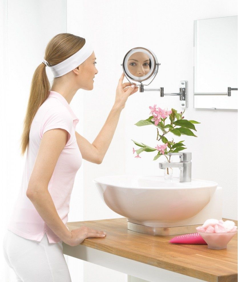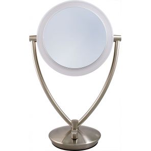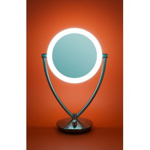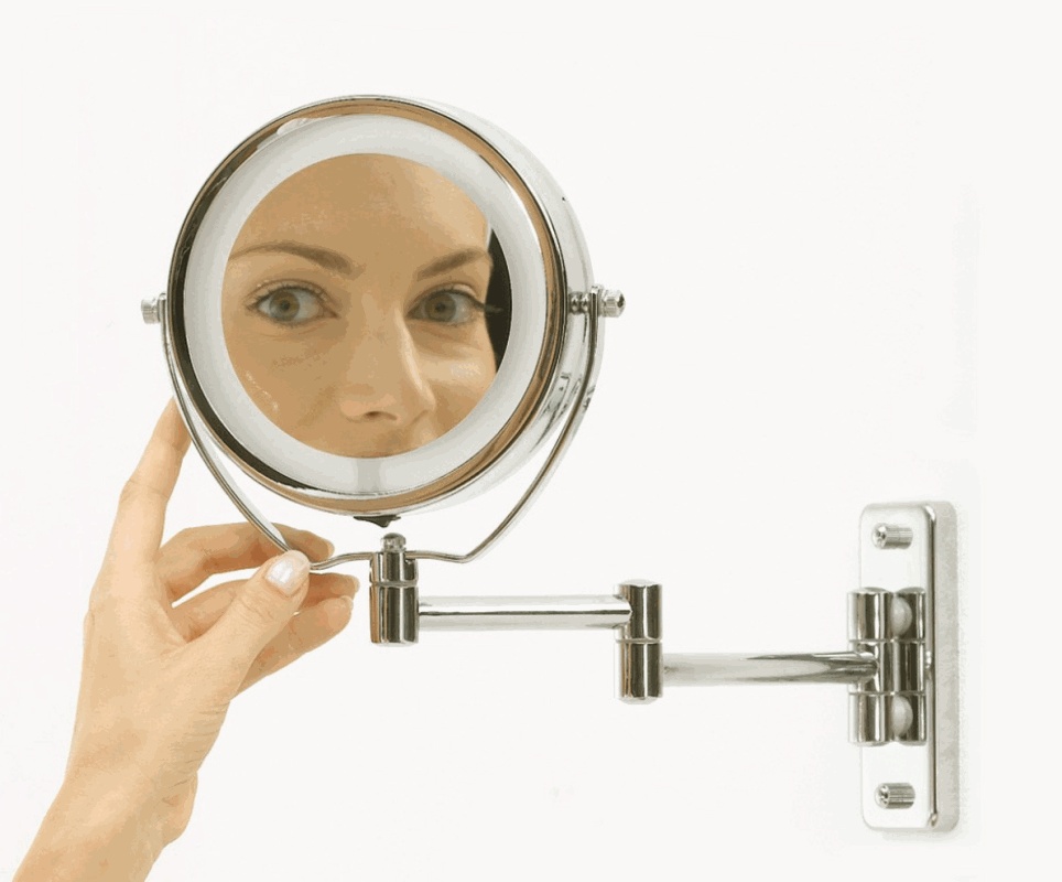 Этот вид подсветки является оптимальным, поскольку лицо освещается равномерно. Одна из сторон зеркала обеспечивает пятикратное увеличение отражения для нанесения идеального макияжа и выполнения тонких косметологических процедур.